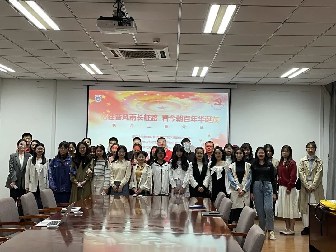 研究生第一党支部、第二党支部、2020级第一党支部同地理与海洋科学学院20硕自然党支部于昆山楼会议室537开展“忆往昔风雨长征路,看今朝百年华诞茂”联合主题党日活动。本次主题党日活动由地理与海洋科学学院20硕自然党支部书记黄雪滢同志主持,四个支部的党员同志参与本次活动。