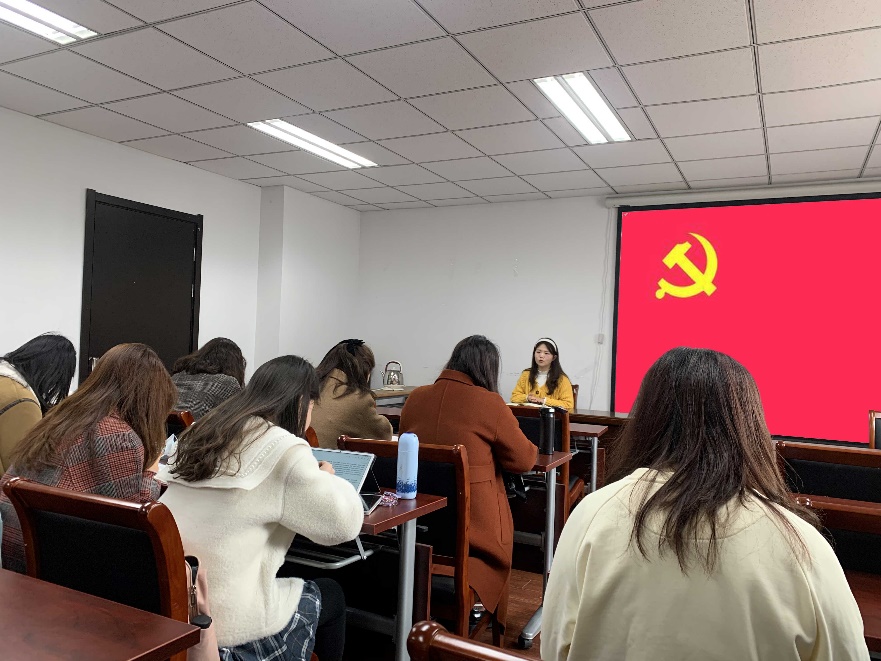 本次会议由2020级硕士生第一党支部书记储馨竹主持,会议的主要内容包括每个党员分别作自我总结与自我批评,党员同志相互评价两个环节。会议伊始,党支书储馨竹简单总结了上学期党支部的各项工作,对支部同志一直以来的积极配合表示感谢,并深刻剖析了做党支书以来的思想上以及工作中的问题,提出了一定的改进措施。