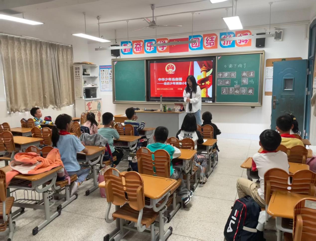 2023年4月21日我院南马微芒服务队来到了南京晓庄学院附属小学。马克思主义中国化研究专业2022级硕士生何雨潼、毛婉婷两位同学带来了以《中华少年当自强》和《真理的味道香又甜》为题的精彩宣讲。用志愿服务点亮小朋友们的心灵之灯,用红色故事点缀小朋友们的童年时光。