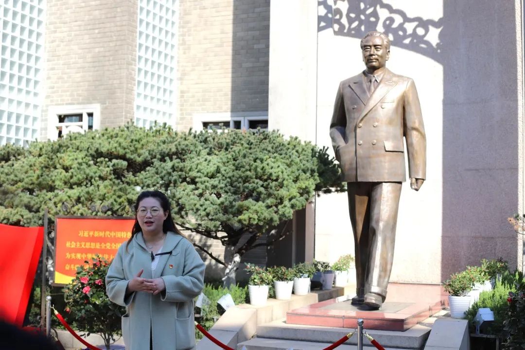 活动伊始,党团支部全体成员肃立于周恩来铜像前,向伟人致以最崇高的敬意。铜像没有基座,仿佛周总理正意气风发地迈步向人们走来。周恩来同志用自己的实际行动,为全党树立了全心全意为人民服务的光辉榜样。