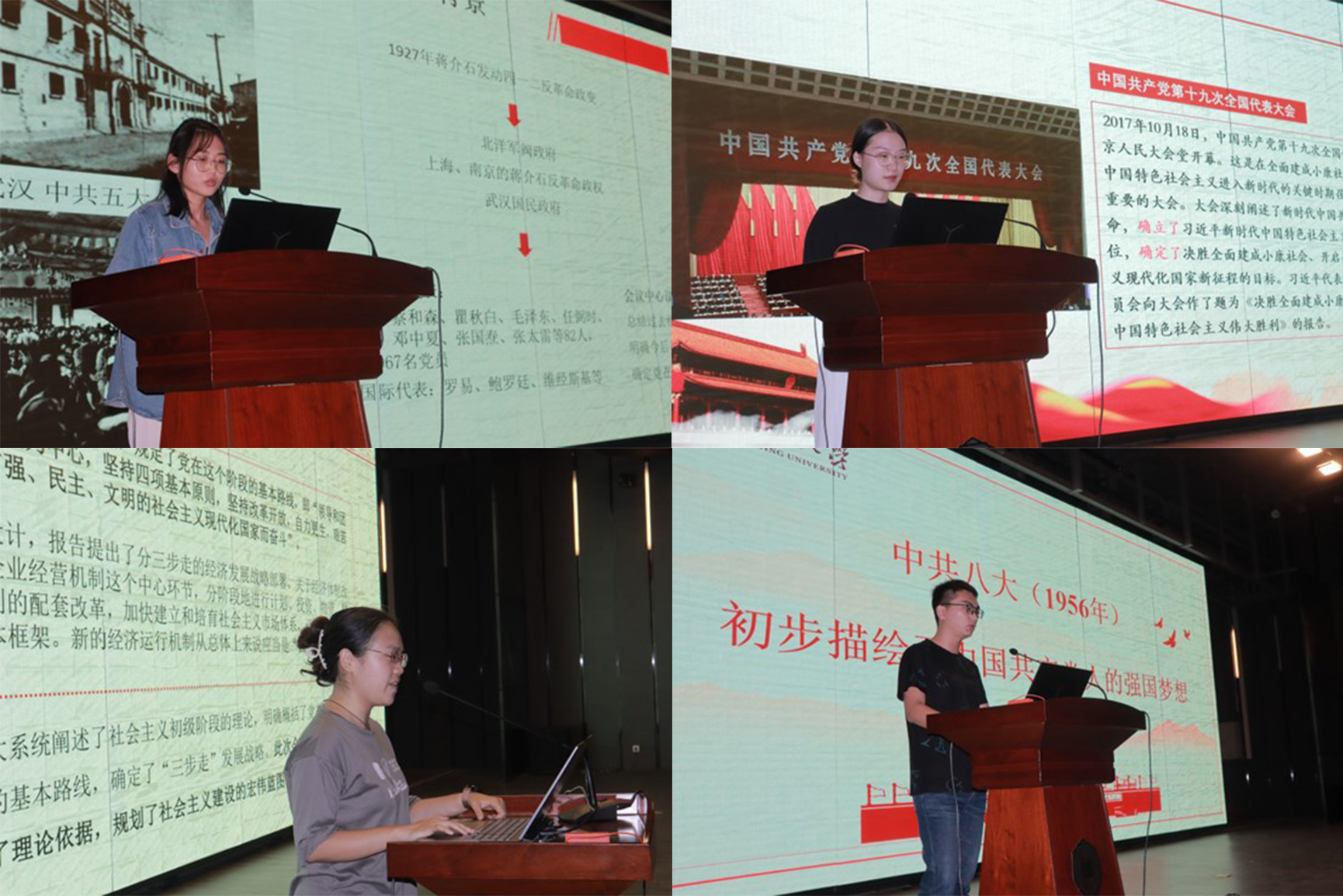 四个支部的19名党员同志给大家带来了一次别开生面的党课——党史联讲活动,串联成中国共产党波澜壮阔的100年征程。马克思主义学院21级硕士生第一党支部的四位成员为大家介绍了党的十六大到十九大。顾静雅同志讲述了党的十六大,是中国共产党在新世纪召开的第一次全国代表大会,也是在我国进入全面建设小康社会、加快推进社会主义现代化的新的发展阶段召开的一次十分重要的代表大会。此次大会把“三个代表”重要思想和马克思列宁主义、毛泽东思想、邓小平理论一道确立为中国共产党的指导思想,是一个历史性贡献,具有划时代的意义。