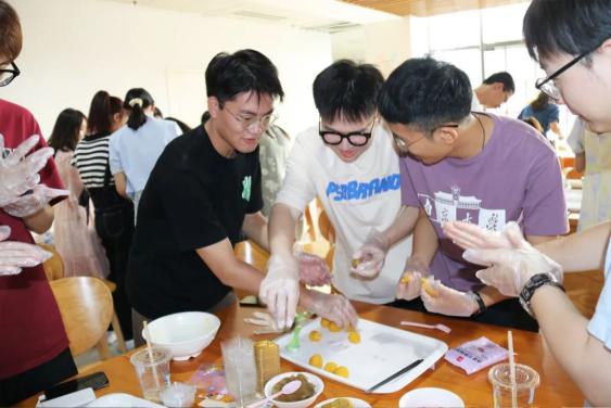 参与的同学们陆续到场,活动准时开始,此次活动由高梦晗同学主持。在动手操作前,贺虹莎同学向大家简要介绍了制作步骤和工具使用流程。大家拿起准备好的材料,兴致勃勃地上手操作:加水、和面、搓球、放馅儿,最后用模具压制成型。