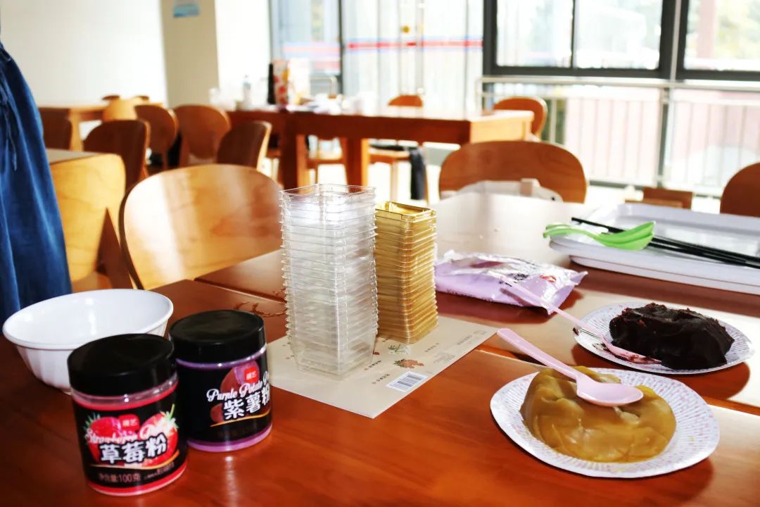 接着,有的同学用食品粉DIY出了“南大紫”、“火龙果红”、“淡雅黄”等饼皮配色,各小组间也交换模具并相互展示自己的成品月饼,场面融洽和谐,大家的脸上都洋溢着开心的笑容。手作冰皮月饼,不仅增进了同学间的脉脉温情,还包进了欢声笑语。在南大马院这个大家庭里,总有人和你共揽秋夜一轮月,共品中秋一味香。