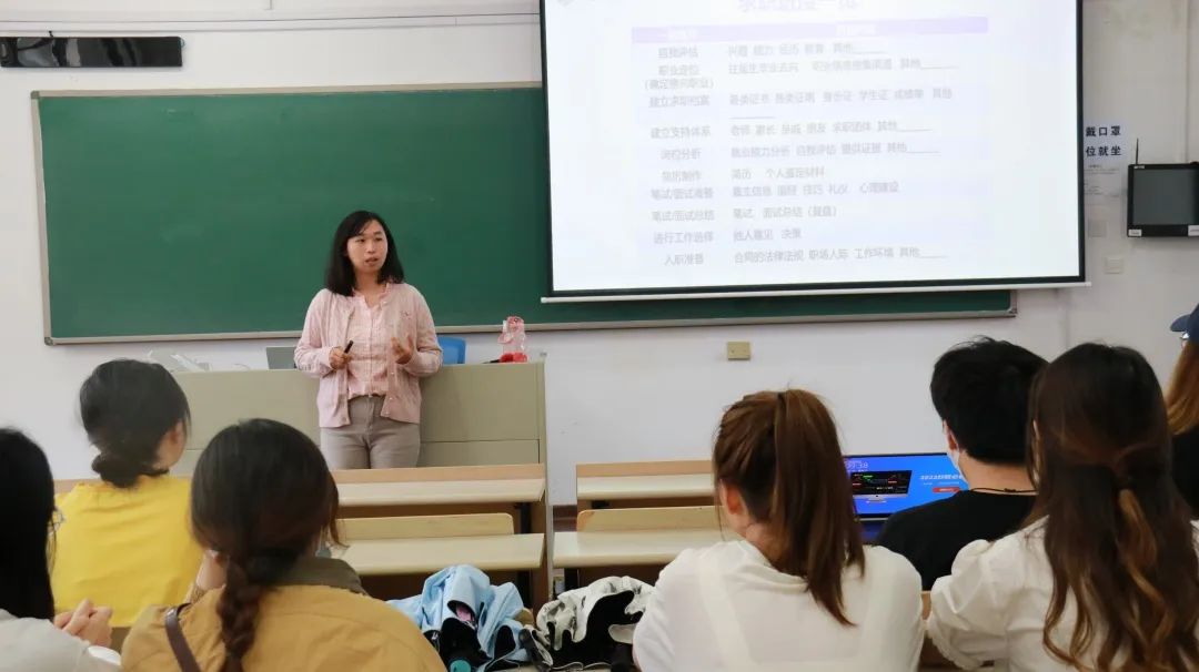 方法论方面,时老师提出求职有道,道即方法。强调掌握正确的求职方法会达到事半功倍的效果。以求职面试为例,在准备简历上需要掌握版面上详略得当、投递中一岗一历的方法;在应对面试中,可以采取预先准备不同时长的自我介绍、锻炼从容演讲能力等方法让自己在面试中脱颖而出。另外,时老师提醒大家注意根据自身情况适时调整生涯目标与方法策略,“台下练习无数次不如实战一次”,时老师以往届学长学姐的实际案例勉励同学们把握机会、勤于练习、不怕失败、勇于尝试,在求职实战中不断积累经验与提升自我。