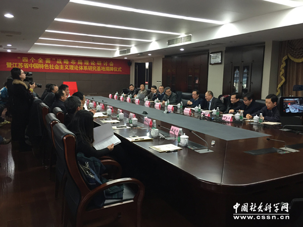 “四个全面”战略布局理论研讨会暨江苏省中国特色社会主义理论体系研究基地揭牌仪式现场。本网记者 吴楠/摄
