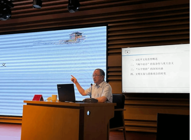 加强校地合作,将有助于在理论与实践的交流互动中推动校地共同进步。25日下午,王建华教授应邀为临汾全市宣传思想文化系统进行了习近平文化思想专题讲座。王建华教授围绕习近平文化思想概述、“两个结合”的重大意义、“六个坚持的深刻内涵、文明互鉴与思维观念等方面作了深入讲解。大家一致表示,此次讲座既是一场思想的盛宴,又是一次精神的洗礼,将结合各自实际,把讲座精神贯彻落实到宣传思想文化工作各方面和全过程。