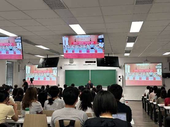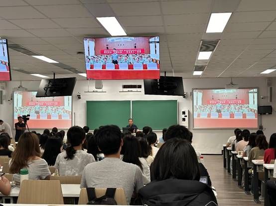 最后,南京大学马克思主义学院沈伯平教授重点讲解抗战阅兵的背景,同时结合毛泽东的《论持久战》论述如何打好新时代中国高水平科技自立自强这一“硬仗”并以此弘扬伟大抗战精神。他结合习近平总书记论中国梦的三句话:中华民族的昨天,“雄关漫道真如铁”;中华民族的今天,“人间正道是沧桑”;中华民族的明天,“长风破浪会有时”,讲解当代大学生在强国建设和民族复兴伟业的担当与责任。最后沈伯平教授勉励新时代大学生“心中有理想、眼中有光芒、脚下有力量”,要以“踏石留印、抓铁有痕”的求真务实精神,实现习近平总书记在9·3阅兵式讲话中提出的“中华民族伟大复兴势不可挡!人类和平与发展的崇高事业必将胜利!”的伟大奋斗目标。全课程在双方学生的热烈掌声中结束。