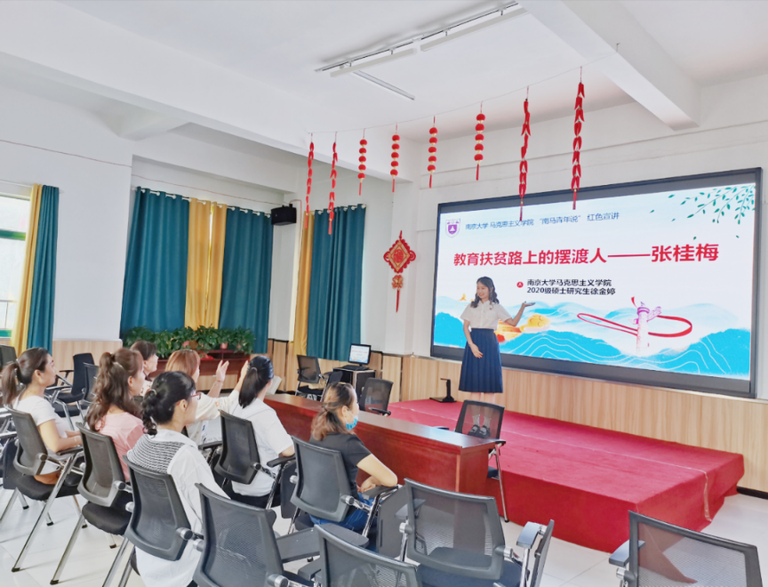 宣讲的最后,徐金婷同学代表南京大学马克思主义学院“南马青年说”社会实践团队向杜集区第二幼儿园的全体教育工作者们用无微不至的关怀给予困难孩童希望表达深深的感谢,向杜集区第二幼儿园曾经或正在参与到教育援疆工作中的教师们表达崇高的敬意。他们在为教育扶贫而努力,他们也是扶贫路上的英雄!