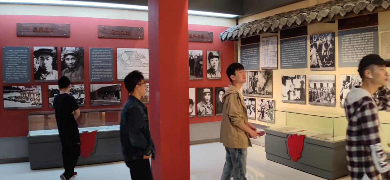 紧接着,学生党员代表来到了烈士陵园内设立的新四军联抗纪念馆。在馆内,展出图表、照片、宣传画100余幅,还保留有“联抗”部队的臂章、武器弹药、学习宣传读本等珍贵的历史文物。集中展现了在中国共产党的领导下,“联抗”部队在极为错综复杂的环境中,模范地执行了党的统一战线政策,团结友军,打击日伪,坚持敌后,保卫根据地等一系列丰功伟绩。