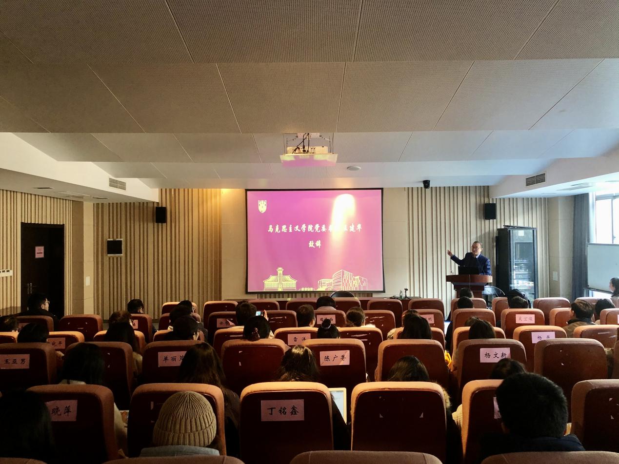 党委书记王建华发表致辞,他指出,“历史就是要寻找回家的路”,中国共产党百年奋斗历程来之不易,伟大民族的背后必定有深厚的历史积淀。坚定理想信念、踏实学习“四史”是我们马院同学的本业所需,作为青年学子们,要继续坚定“四个自信”,党员同志更要发挥先锋模范作用,将学“四史”的号召与自身的专业学习、修养提升相结合,转化为自觉主动的实践和行动。