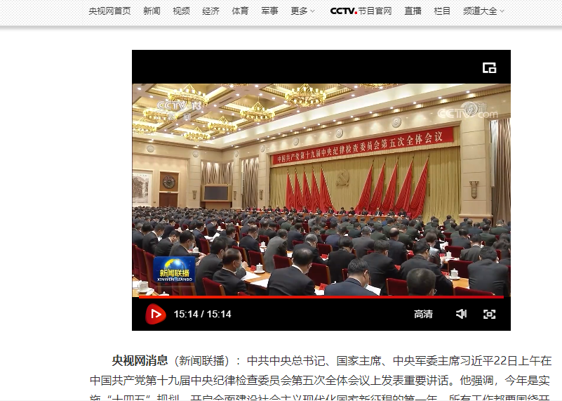 会议伊始,进入第一个环节,储馨竹播放了十九届中央纪委五次全会新闻报道视频,带领支部党员简单回顾了本次全会的概况。
