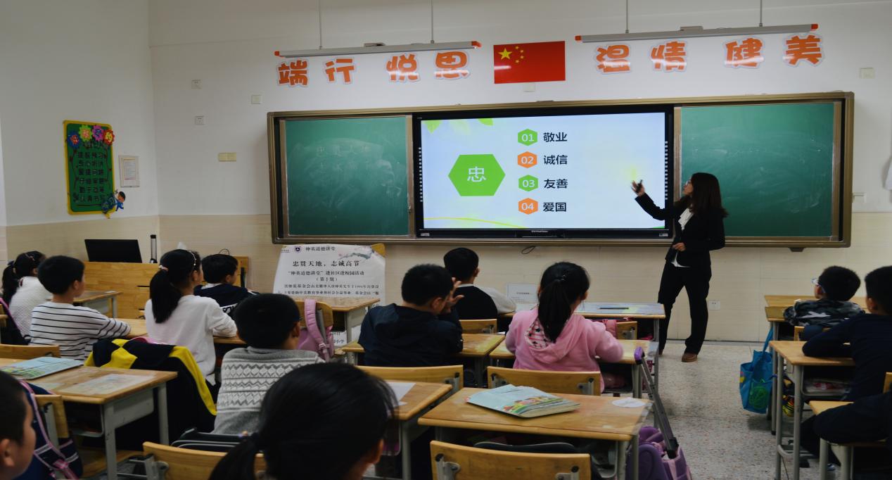 接下来,陈梦婷同学以PPT的形式生动系统地讲述了“忠”的内涵,从个人、社会和国家三个层面讲述了“忠德”的具体表现。通过讲述屈原投江、岳飞精忠报国等中国古代经典中有关“忠”的小故事来激起大家的共鸣,并着重强调了“忠”在当代社会中的重要地位,鼓励各位小学生在实践中积极践行“忠德”,成为“忠”文化的传承者。