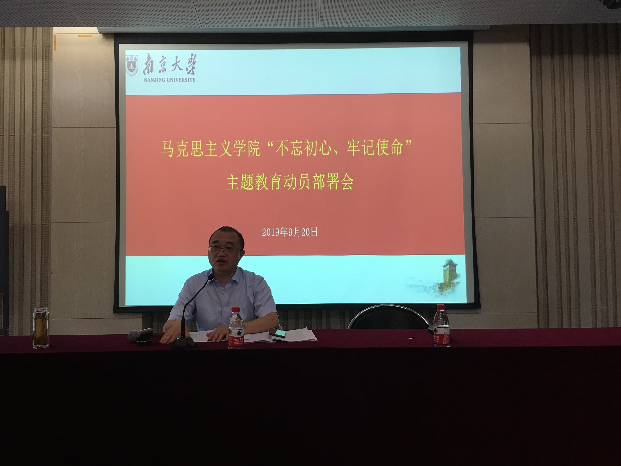 本次会议分为两个阶段:第一阶段为学院党委书记王建华部署“不忘初心、牢记使命”主题教育工作,第二阶段为南京雨花英烈研究院院长向媛华作“忠诚与背叛”主题报告。