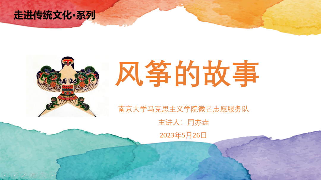 学习风筝文化,筑梦非遗传承。2023年5月26日,我院南马微芒志愿服务队走进兆园社区的南京晓庄学院第一实验小学,马克思主义理论专业21级博士生周亦垚讲师为同学们带来了以《风筝的故事》为题的精彩课程。中国近现代史基本问题研究专业22级硕士生章颖、思想政治教育专业22级硕士生陈巧馨担任本次课程的助教。