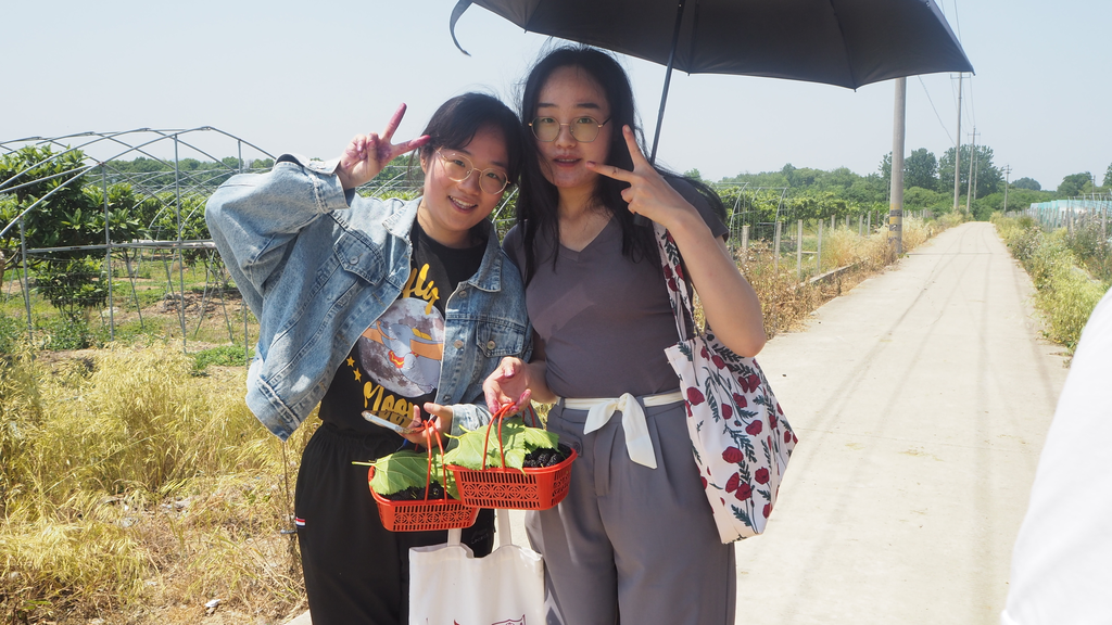 在农业产业基地,南天竹、茭白、小麦等农作物长势喜人,引得同学们驻足观赏。王知逊为同学们细心讲解了各类农作物的生长习性与经济价值,令他颇为自豪的是白塔村果园产业所取得的不斐成绩——五一期间上市的小樱桃火爆一时,正当季的是同学们即将前往采摘的桑葚,之后到7、8月份,水蜜桃、黄桃和魏可红提也将上市,这些都曾获江苏省优质水果大赛金奖和银奖。