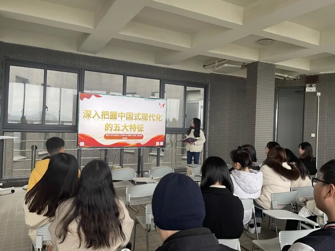 参观活动结束后,大家来到会议室,我支部丛政和冯名瑶同志围绕“中国式现代化”,分别作《中国式现代化:以奋斗书写时代荣光》《深入把握中国式现代化的五大特征》的主题宣讲。随后,两支部党员围绕科技强国、乡村振兴、人类命运共同体、人口红利与人才红利等问题展开积极讨论,现场不时响起热烈掌声。