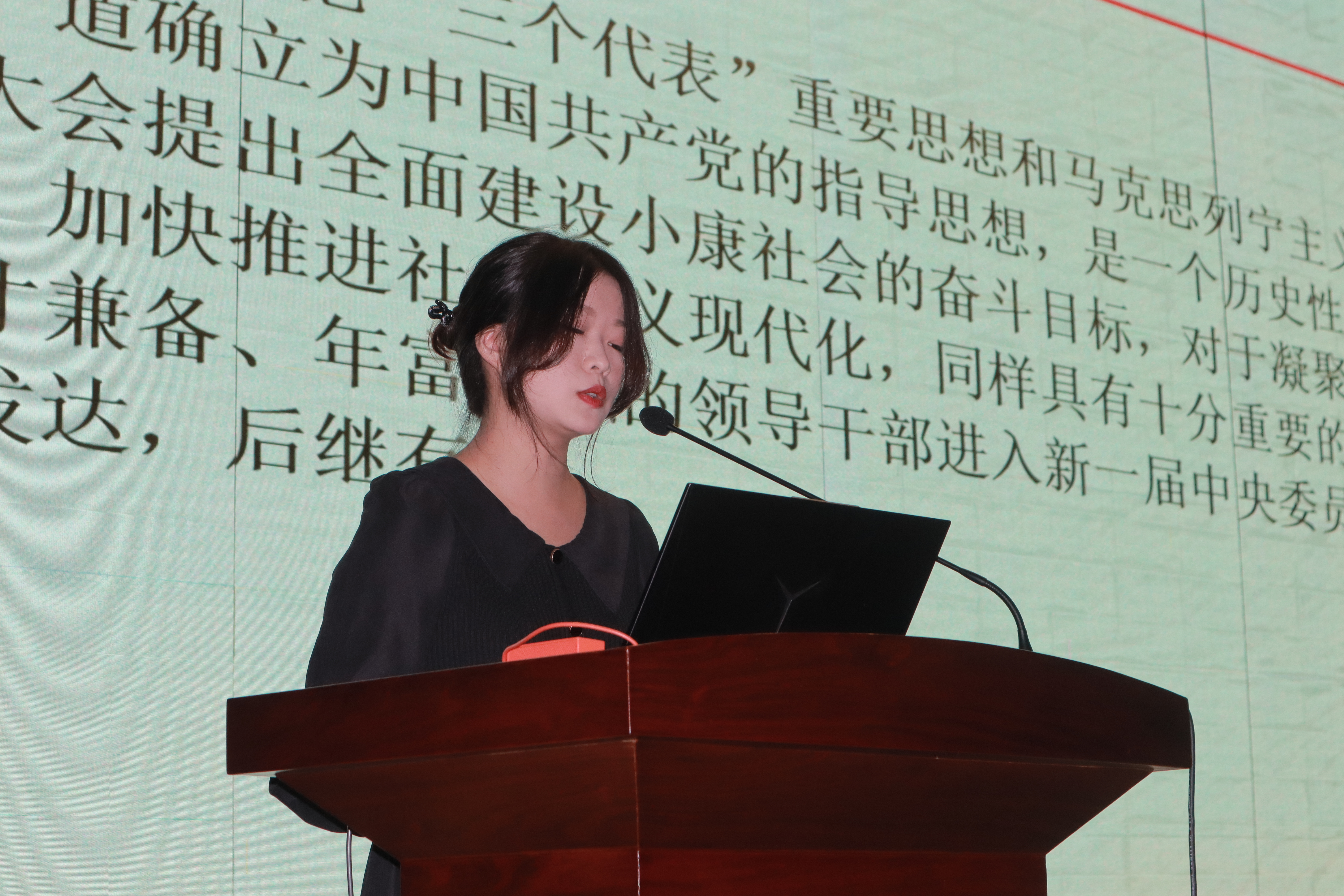 四个支部的19名党员同志给大家带来了一次别开生面的党课——党史联讲活动,串联成中国共产党波澜壮阔的100年征程。马克思主义学院21级硕士生第一党支部的四位成员为大家介绍了党的十六大到十九大。顾静雅同志讲述了党的十六大,是中国共产党在新世纪召开的第一次全国代表大会,也是在我国进入全面建设小康社会、加快推进社会主义现代化的新的发展阶段召开的一次十分重要的代表大会。此次大会把“三个代表”重要思想和马克思列宁主义、毛泽东思想、邓小平理论一道确立为中国共产党的指导思想,是一个历史性贡献,具有划时代的意义。