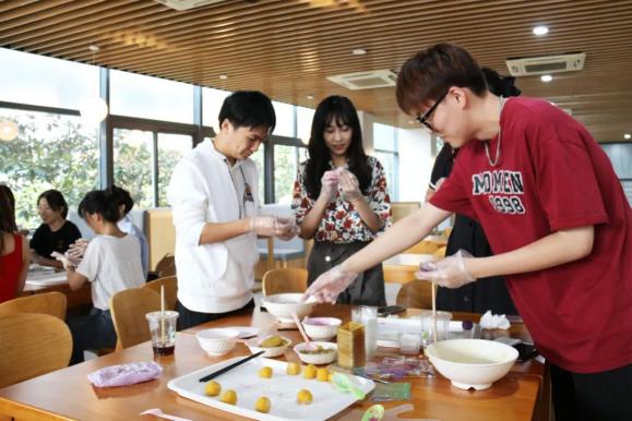 初次制作,有的月饼“发了福”,还有的“漏了馅”。几次尝试后,大家逐渐掌握了技巧和用量,伴随着一声声赞叹,一个个外观雅致、芳香四溢的月饼“脱模”而出,再配上精心挑选的音乐,现场气氛逐渐热烈了起来。