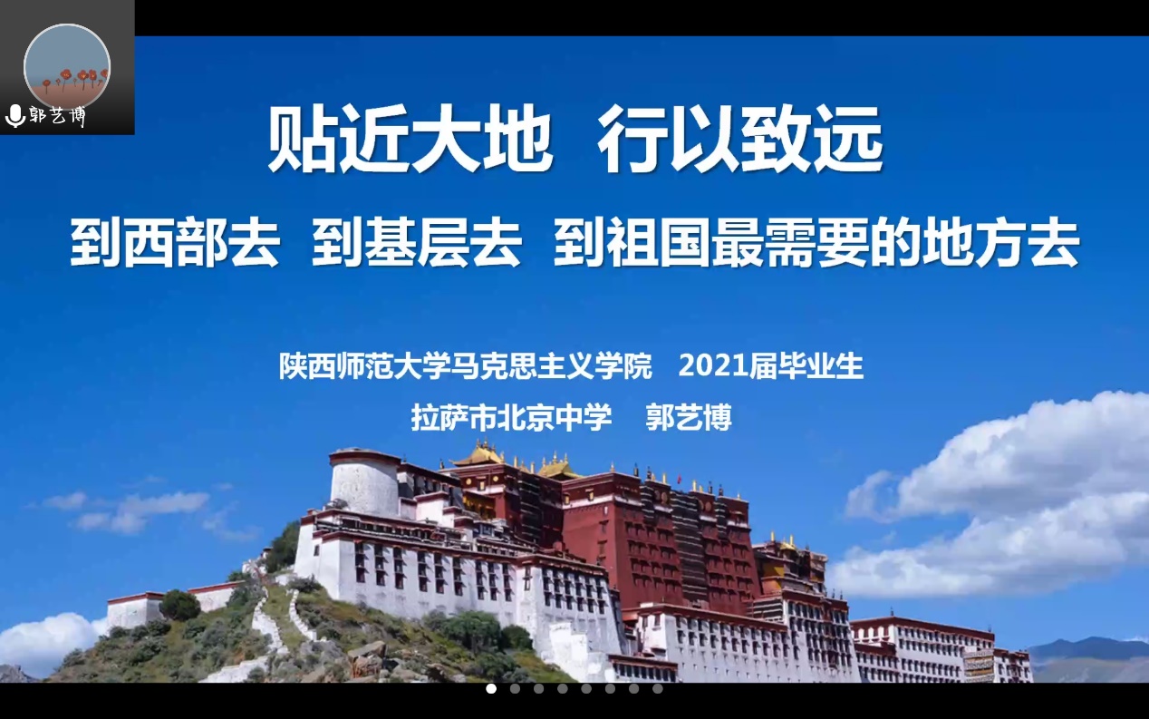 港台青年与内地青年同根同源,拥有共同记忆和相似的文化背景,在祖国更广阔的大地上,也有这样一群青年选择响应党和国家的号召,扎根西部,奉献自己。党日活动的第三部分由两位赴西藏和宁夏支教的同学分享他们的理想之路。陕西师范大学马克思主义学院2021届毕业生郭艺博当前正于西藏从事教育工作,从前期的紧张忐忑,对当下充满未知感,到深入实践,行知感受,克服对未来的无力感,再到投身支教,心怀热勇,践行生命的意义感,她坚持用自己的身体力行去实现“贴近大地,行以致远,到西部去,到基层去,到祖国最需要的地方去”的人生理想,使支部成员认识到了个人价值追求与祖国需要、祖国复兴使命的交融。
