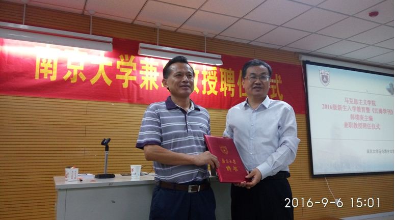 9月6日下午3:00,南京大学马克思主义学院2016级新生入学教育活动暨《江海学刊》韩璞庚主编兼职教授聘任仪式于仙林校区圣达楼102教室举行。南京大学党委常委、宣传部长、马克思主义学院院长王明生教授,马克思主义学院副院长胡大平教授、王建华教授出席本次活动并作了重要报告,参加本次活动的还有马院教师和全体研究生、博士生。仪式由学院副院长王建华教授主持。